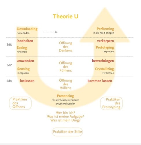 Wozu ist Theorie U gut: Wann immer ein Prozess auf der Handlungsebene stockt, ist es wichtig, anstatt mehr von demselben zu tun, die gleiche Herausforderung anders anzugehen und sich auf die nächst tiefere Ebene von Komplexität und Emergenz zu begeben“, so Otto Scharmer.