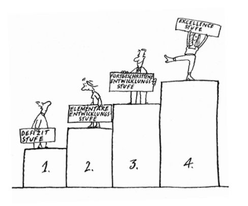 Vielseitiges Manual, das mit der Erreichung von Stufen arbeitet: Von der Defizitstufe über elementare und fortgeschrittene Entwicklungsstufe zur Exzellenzstufe.