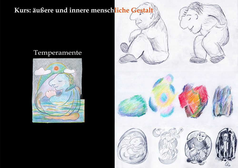 Wenn wir eine Seelengeste besonders häufig einnehmen, hat das Langzeitwirkung auf unseren Körper. Der Ausdruck gräbt sich ins Gesicht ein und hat auch Auswirkungen auf unsere Körperhaltung. Wenn man jetzt aber ein Temperament darstellen will, muss man in diesen Prozess der Langzeitwirkung einsteigen. Die Frage erweitert sich dann zu der: „In welcher Gestalt würde man einen Phlegmatiker auf die Welt kommen lassen?“ (siehe Vorschaufilm)