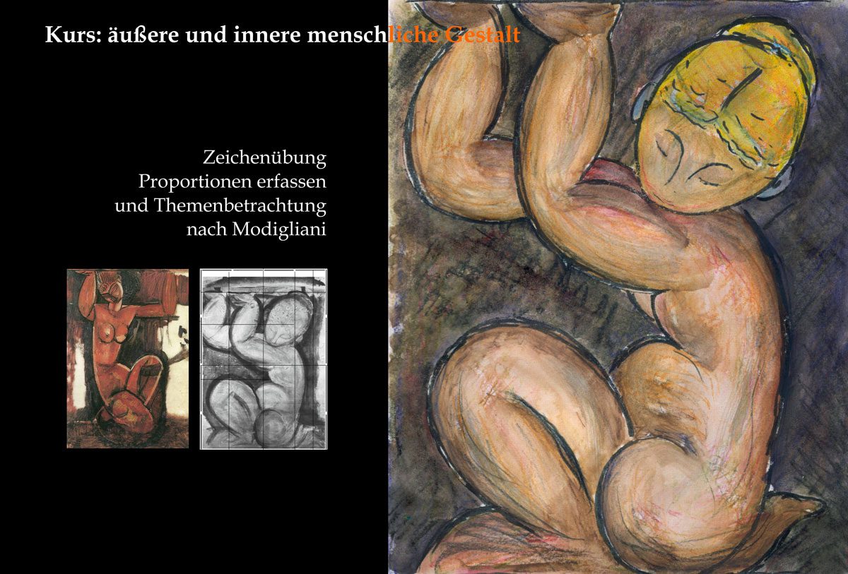 Die Kraft, “etwas zu tragen”, lässt sich durch das Modellieren der Körperform hervorheben. Um noch besser in die Thematik hinein zu kommen, arbeiten wir nun auch mit Farbe. (siehe Film)